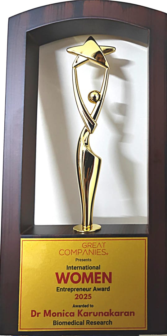 Dr. Monica Karunakaran, Director of PROPUL Evidence LLP, received the 2025 Great Companies International Women Entrepreneur Award for her leadership and commitment to advancing global and public health through evidence-based research and collaboration.