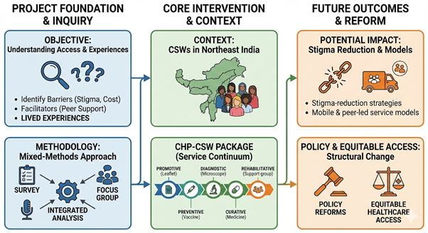 The objective is to develop and evaluate a comprehensive health promotion package that enhances the physical, mental, and sexual health of commercial sex workers in Meghalaya. It aims to improve service uptake and overall wellbeing through structured, community-driven interventions.